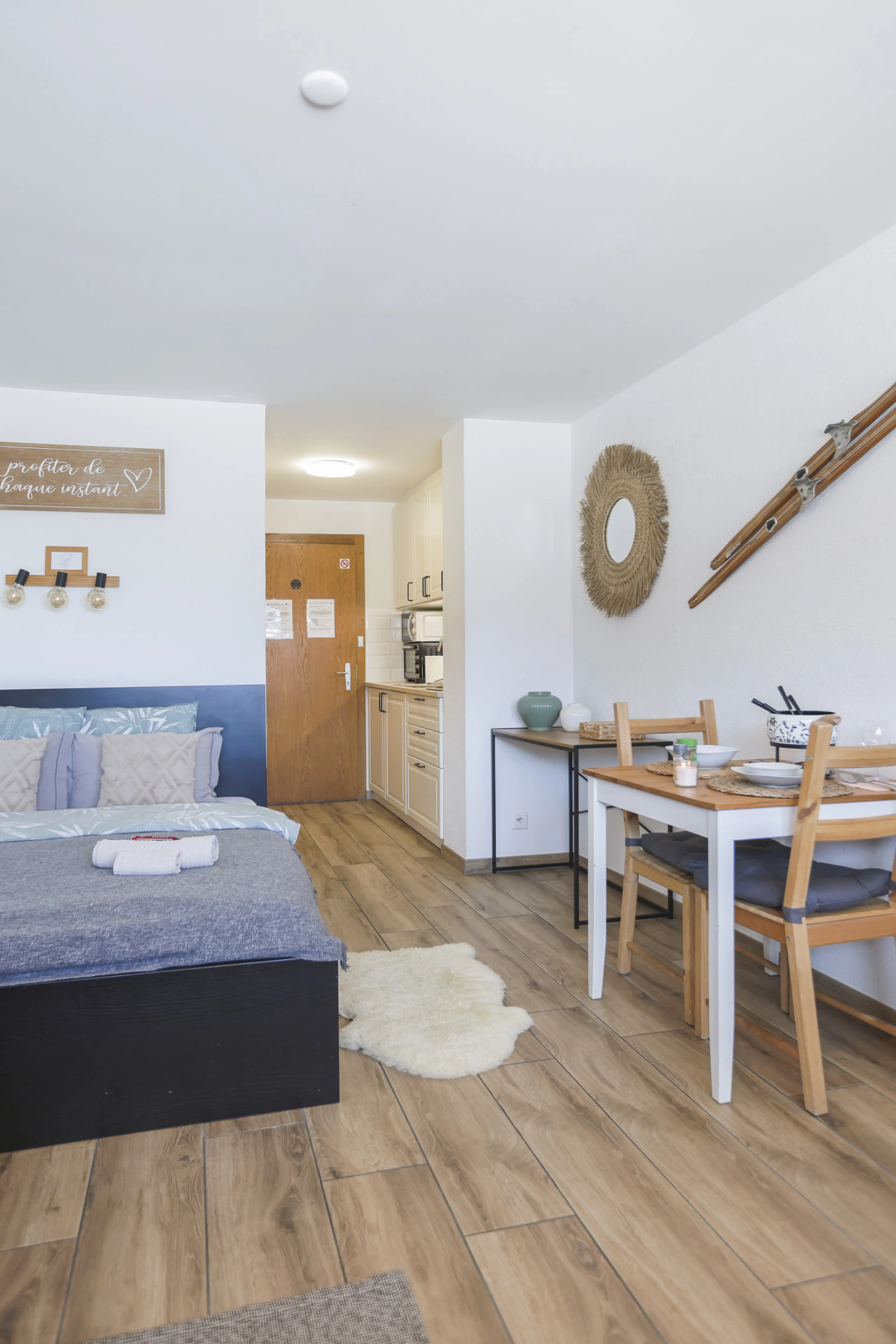 Discover the charm of Haute-Nendaz from our cozy, beautifully appointed 25m2 ground floor studio. Conveniently located in the heart of the village, our space provides all the home comforts you need for an unforgettable stay. Step into our petite yet well-furnished stylish kitchen, complete with al...